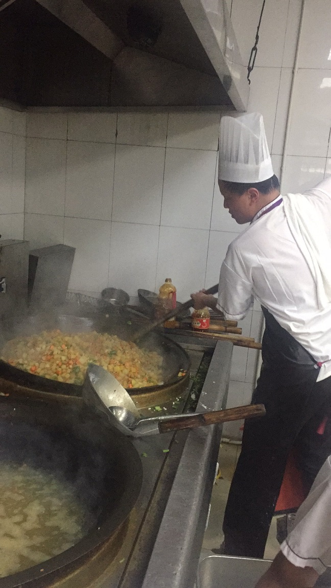 食堂工作人员每天从早上5点就开始了一天的工作,为早到的班主任准备好早餐,给学生烹制营养丰富的中饭。看到学生能够愉快的用餐,他们也感到很欣慰。