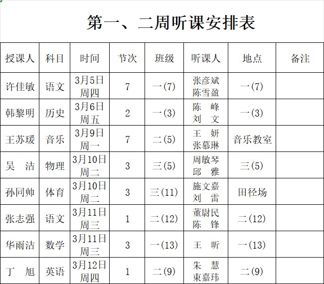 第一、二周听课安排表
