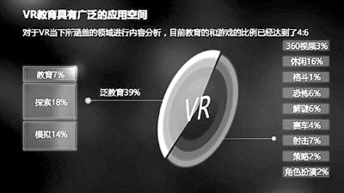虚拟现实是一个体验型的产品。随着手机价格的下降,虚拟现实和手机的结合,会让更多学生对学习产生兴趣,也许不会像我们想象的颠覆,但在这方面的改变会很实际。家境比较好的家庭配置这样的学习设备,如果孩子戴上眼镜后家长能知道孩子在看什么,作父母的会很高兴看到家里的小孩终于愿意坐下来学习,就现阶段在家教中也会有很大的帮助。再看终身教育下公民所需要的基本的知识量和信息量,这是前所未有的改变。