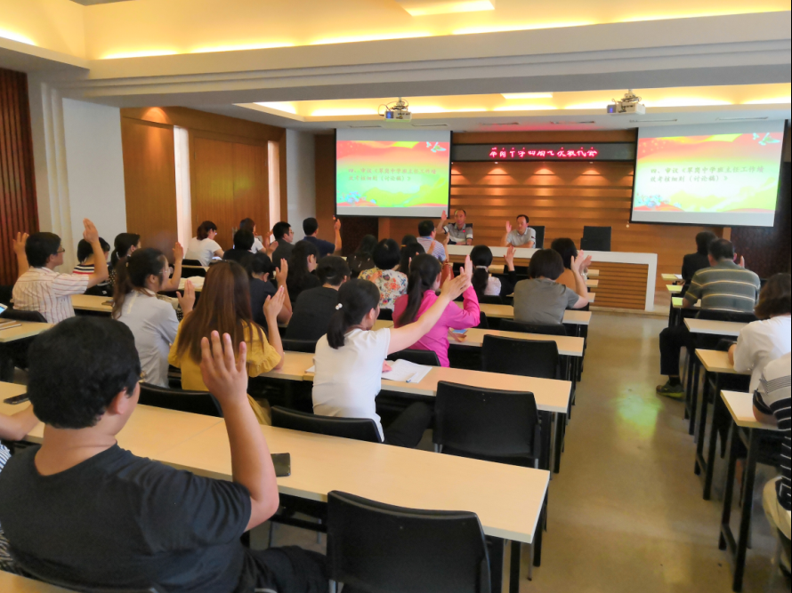 9月19日下午,翠岗中学在鸣轩会议室隆重举行四届七次教代会。会议由工会沈在宏主席主持。