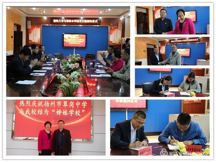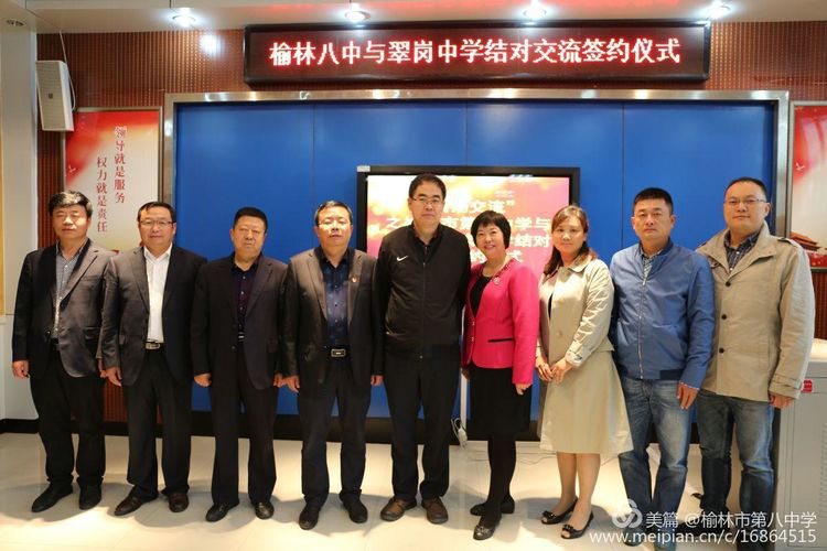 为了贯彻落实榆-扬教育深度合作有关会议精神,应榆林市第八中学贺茂盛校长的邀请,9月19日上午,扬州市翠岗中学蒋晓美副校长一行4人来到榆林市第八中学,在榆林市教育局基础教育一科樊军茂科长和八中教师代表的共同见证下,榆林八中的贺茂盛校长和翠岗中学的蒋晓美副校长在榆林八中的会议室签订了学校友好结对交流协议。随后两校教务、教研、电教、德育等部门和学校骨干教师代表分别签订了结对协议。自此两校正式结为姊妹学校,双方学校将在今后的学校管理、教育教学、教育科研和教育服务等各方面进行无障碍的交流沟通,实现动态实时共享,共同提升学校的办学层次和管理水平。