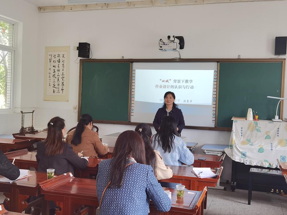 活动的最后,正高级教师、市特级教师张蕾萍为一线数学老师带来了微讲座《“双减”背景下数学作业设计的认识与行动》。张老师阐释了数学作业的功能和价值取向,基于当前数学作业设计的现状,提出了立足于学生视角、学科视野和课程视域的数学作业设计的优化路径。通过这次讲座,老师们对“双减”背景下的作业设计有了更为全面和深刻的认识。