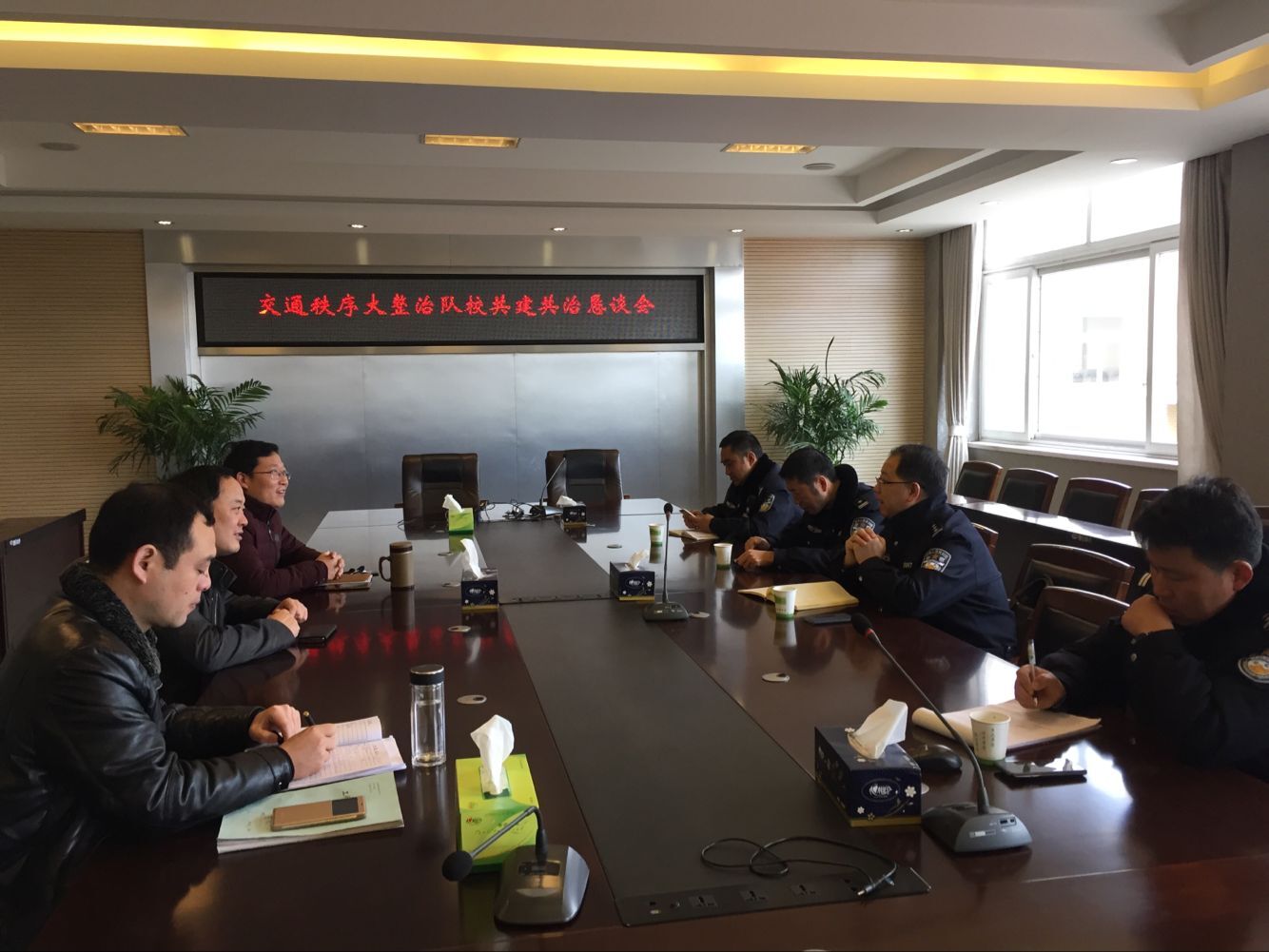 3月22日上午,交通秩序大整治队校共建共治恳谈会在翠岗中学召开。学校李明刚校长、钱卫峰副校长、学工处主任戴林,交警二大队张金龙以及三位警员参加了会议,张金龙对警校共建共治工作做了动员部署。